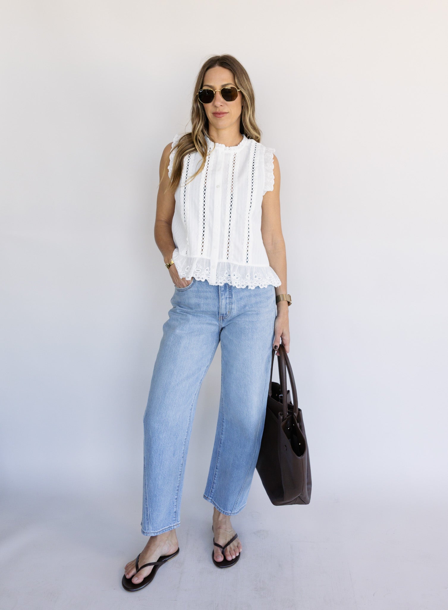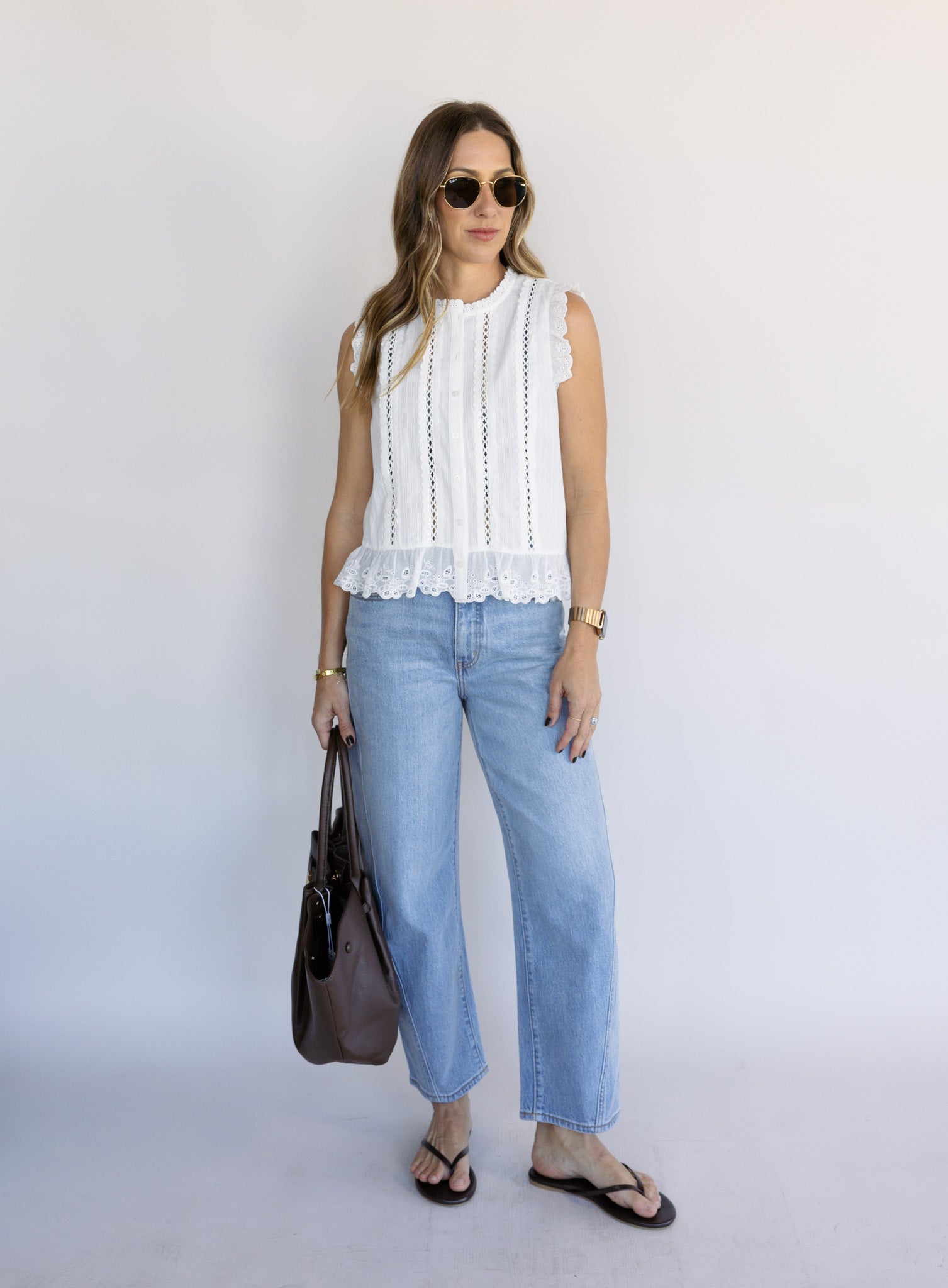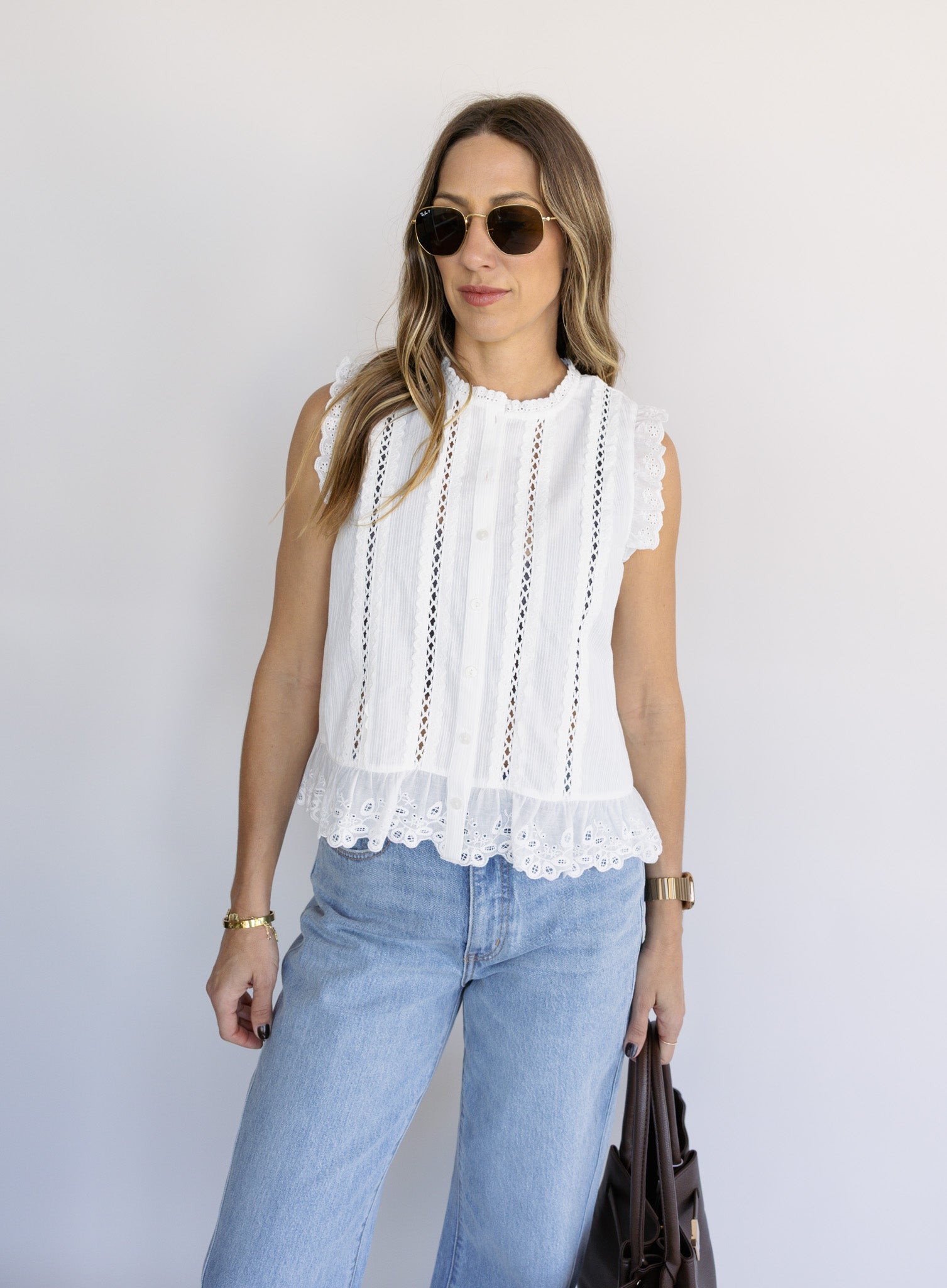 The Dia Top adds a feminine, elevated touch with delicate details and a timeless silhouette. Easy to dress up or down, it brings effortless charm to both casual and polished looks. A versatile piece that feels classic yet fresh.