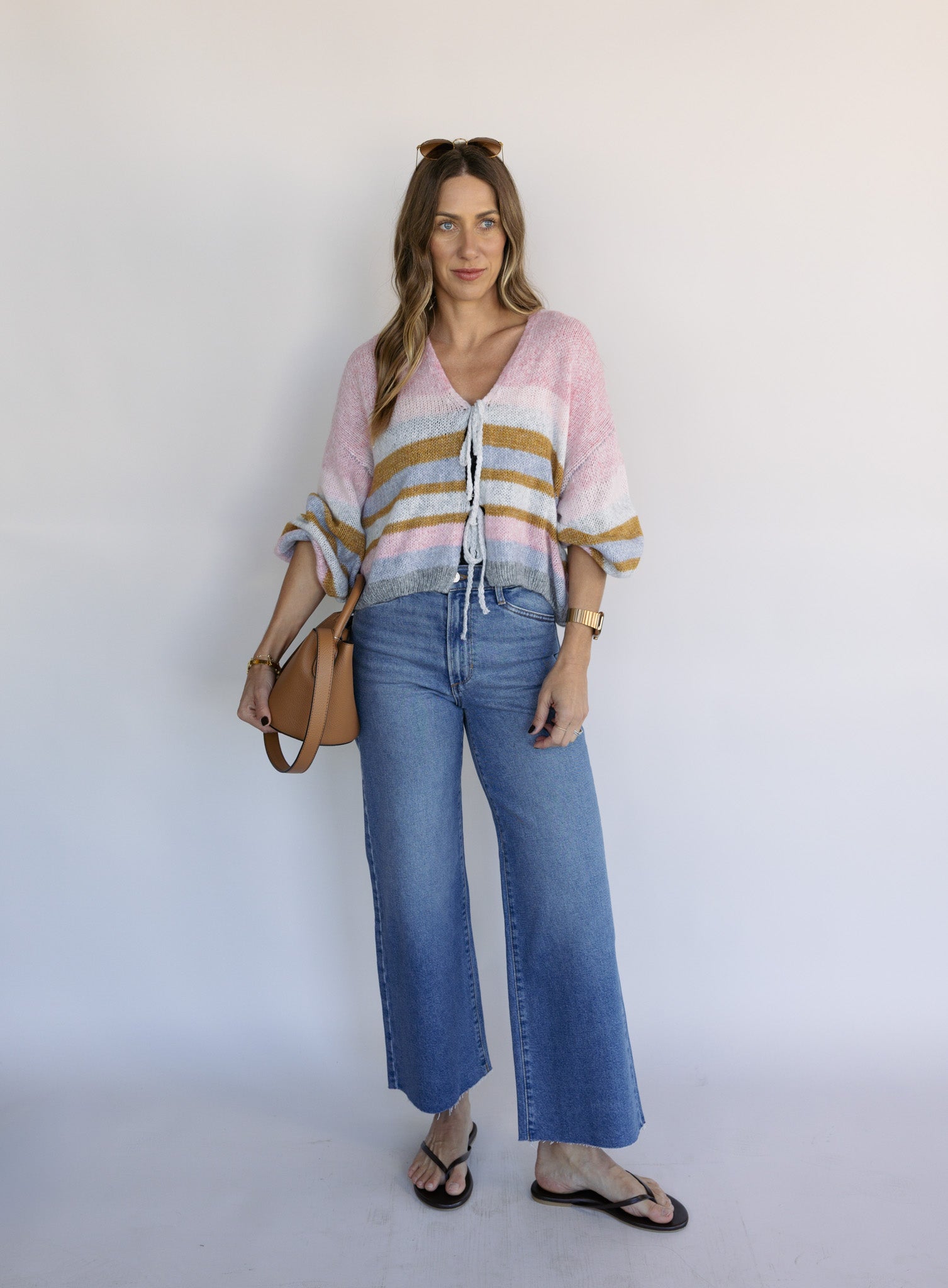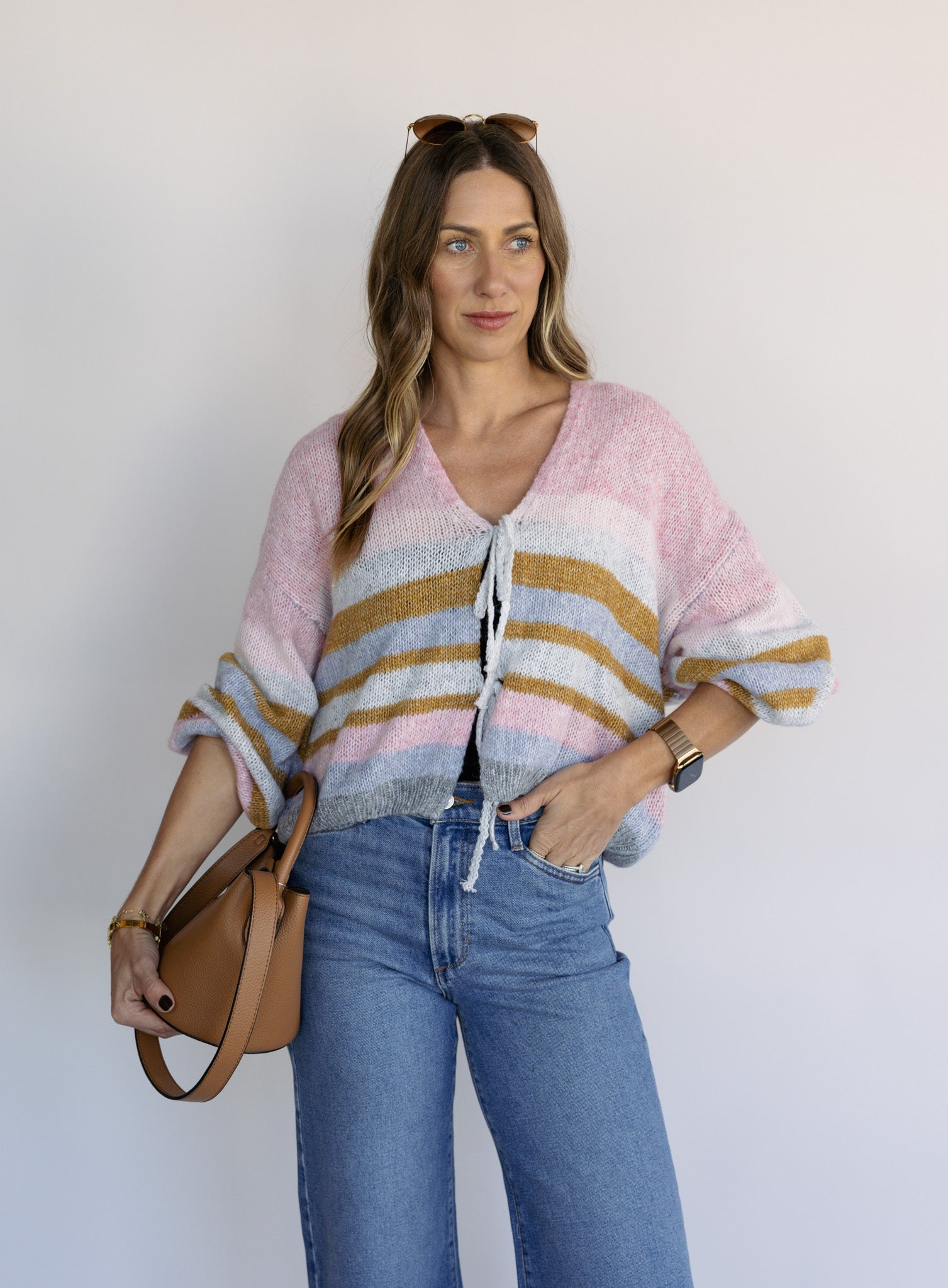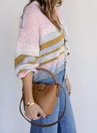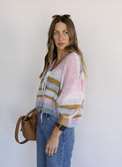 Color and personality in cardigan form, the Kiah features soft multi-colored stripes that bring instant joy to any outfit.