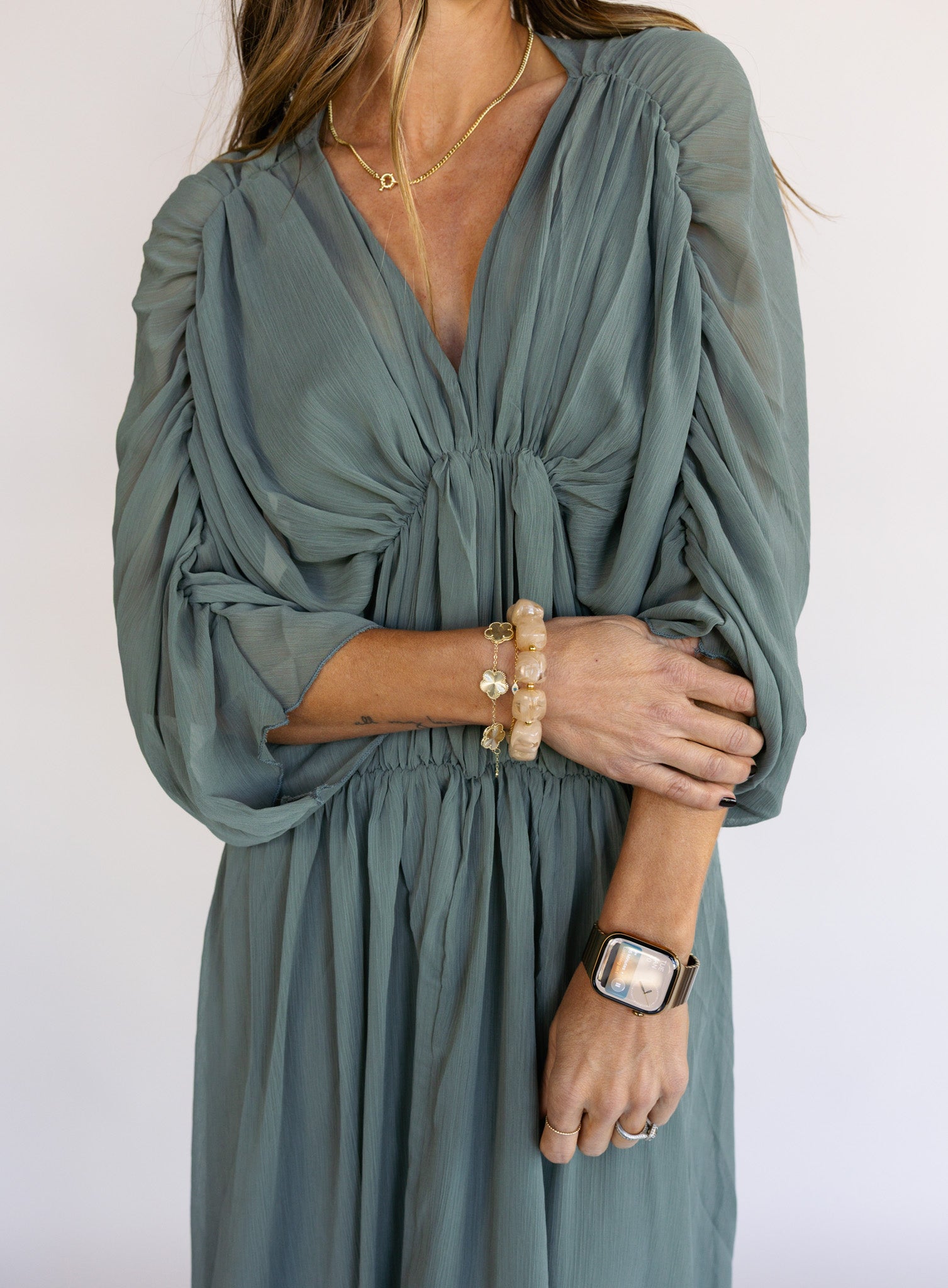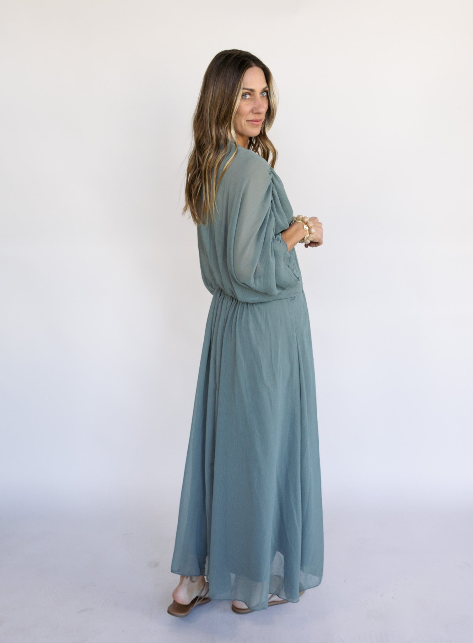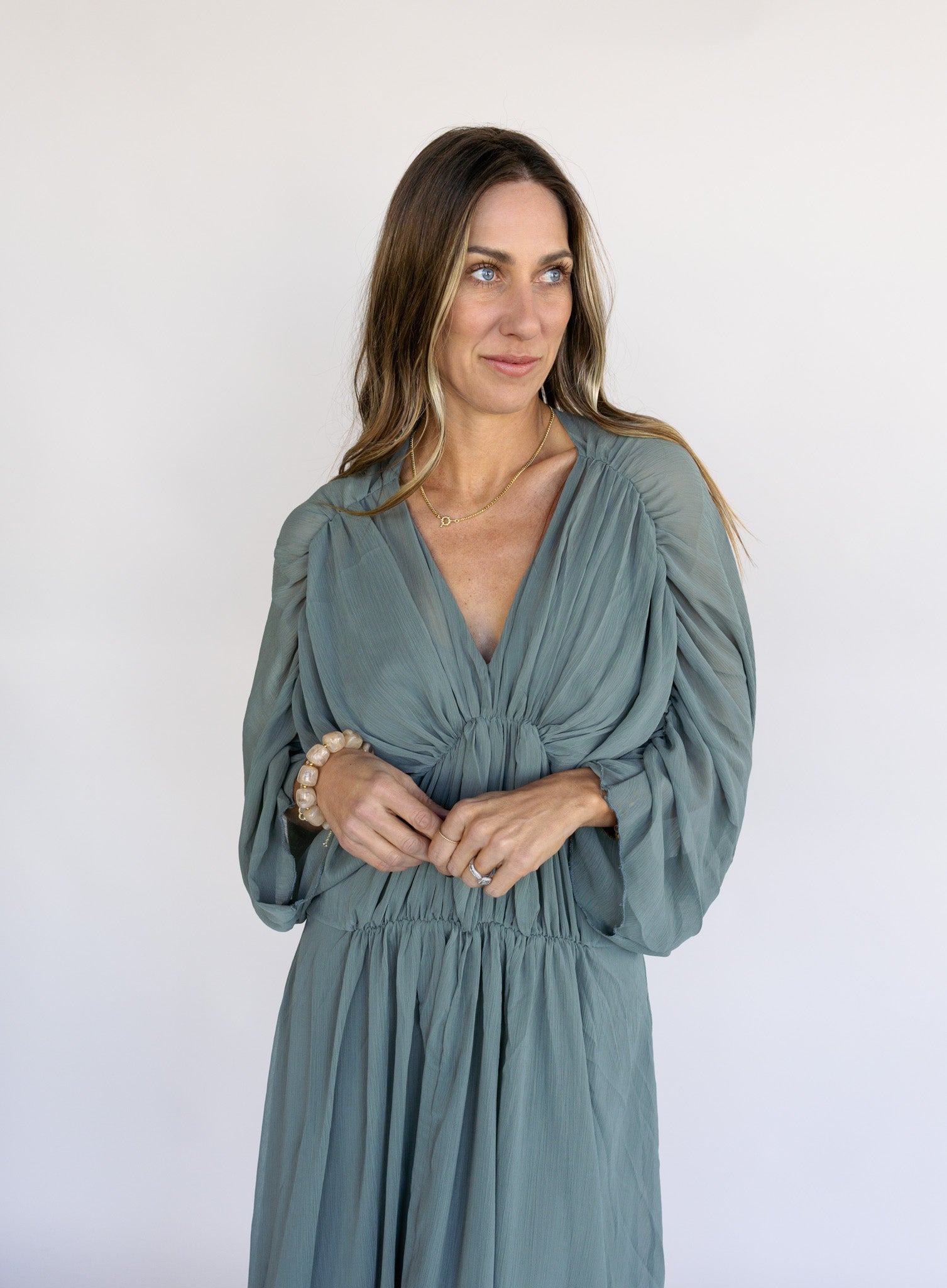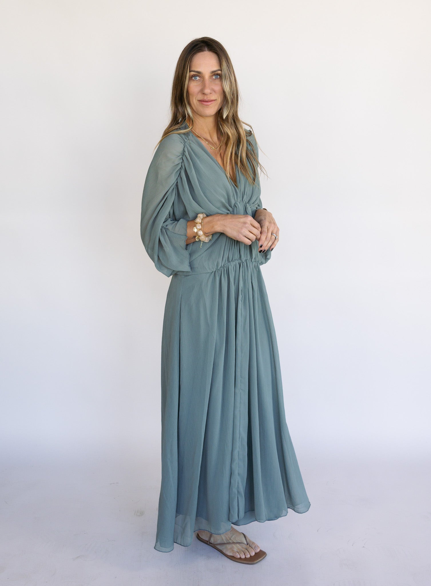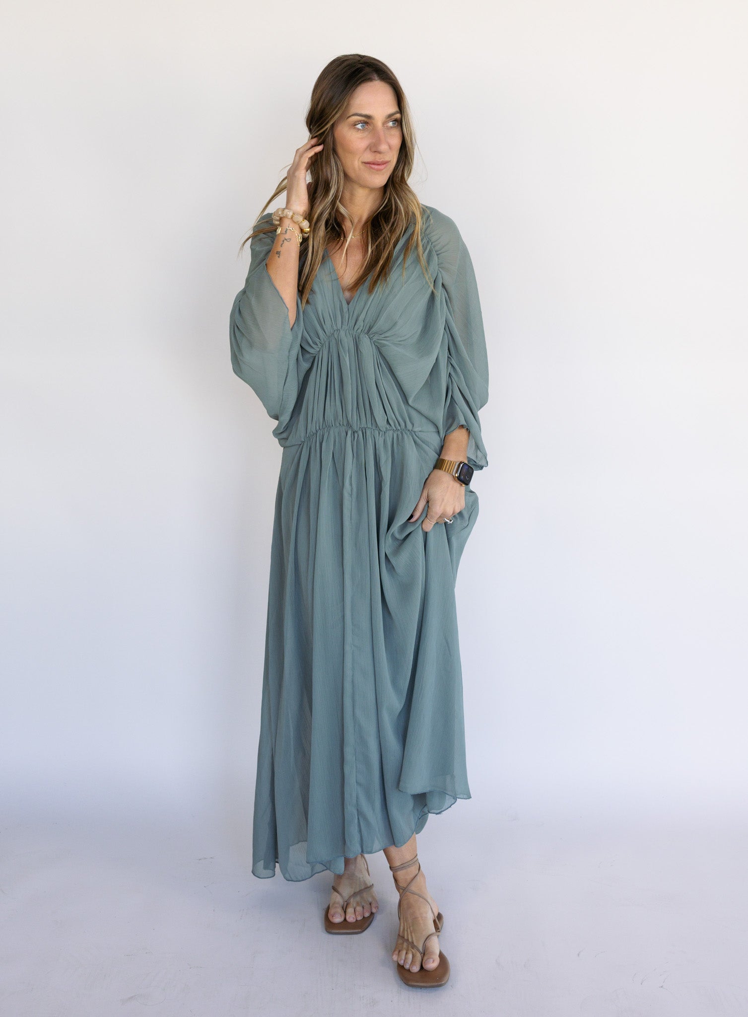 A romantic, easygoing dress with beautiful movement. Designed with a gently gathered waist and airy fabric, it drapes effortlessly and feels just as comfortable as it looks, making it perfect for perfect for events, evenings, and elevated occasions.
