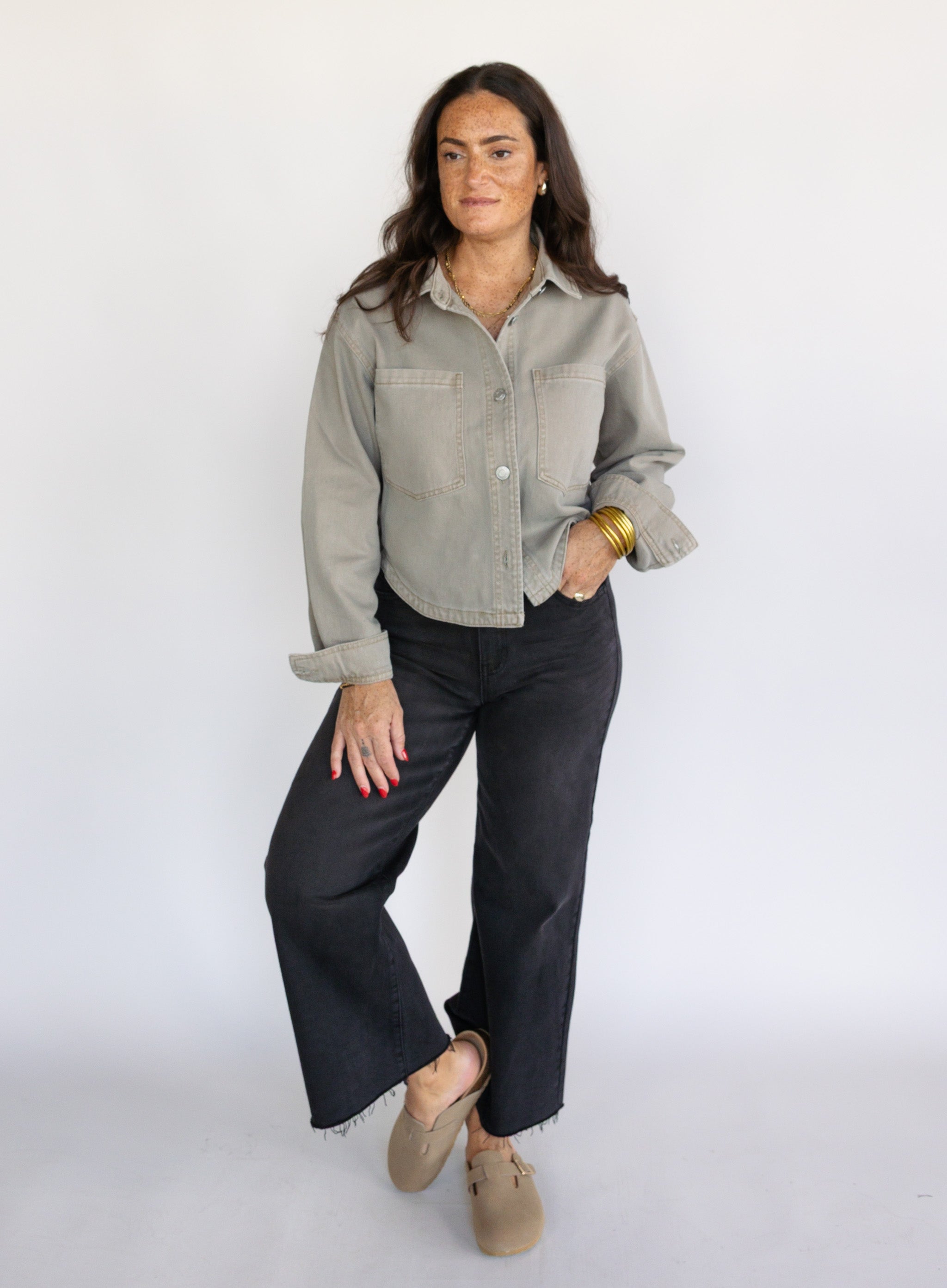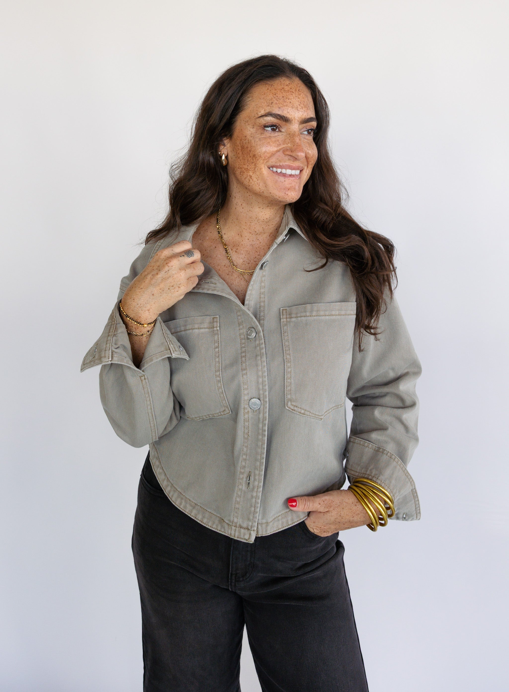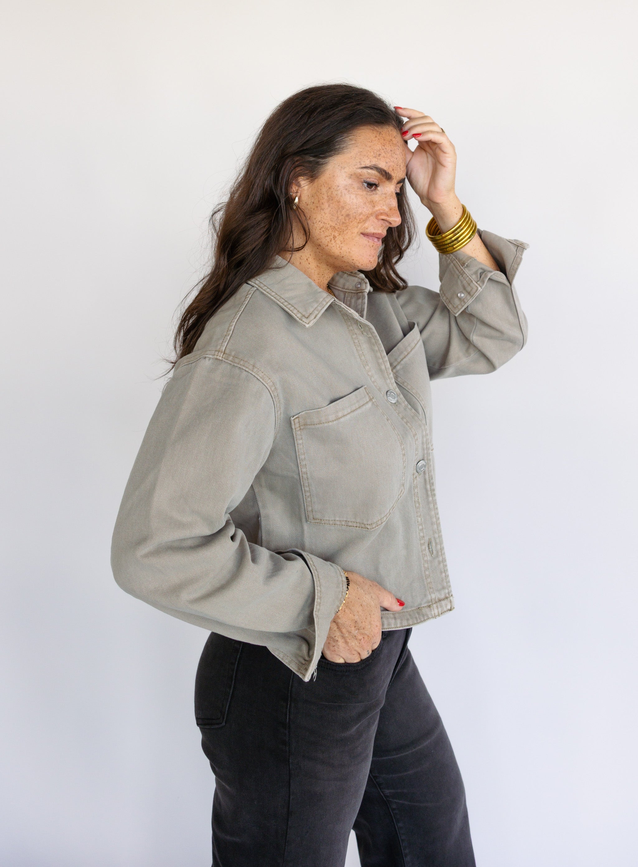 Z Supply: All Day Cropped Denim Jacket - Pebble Moon