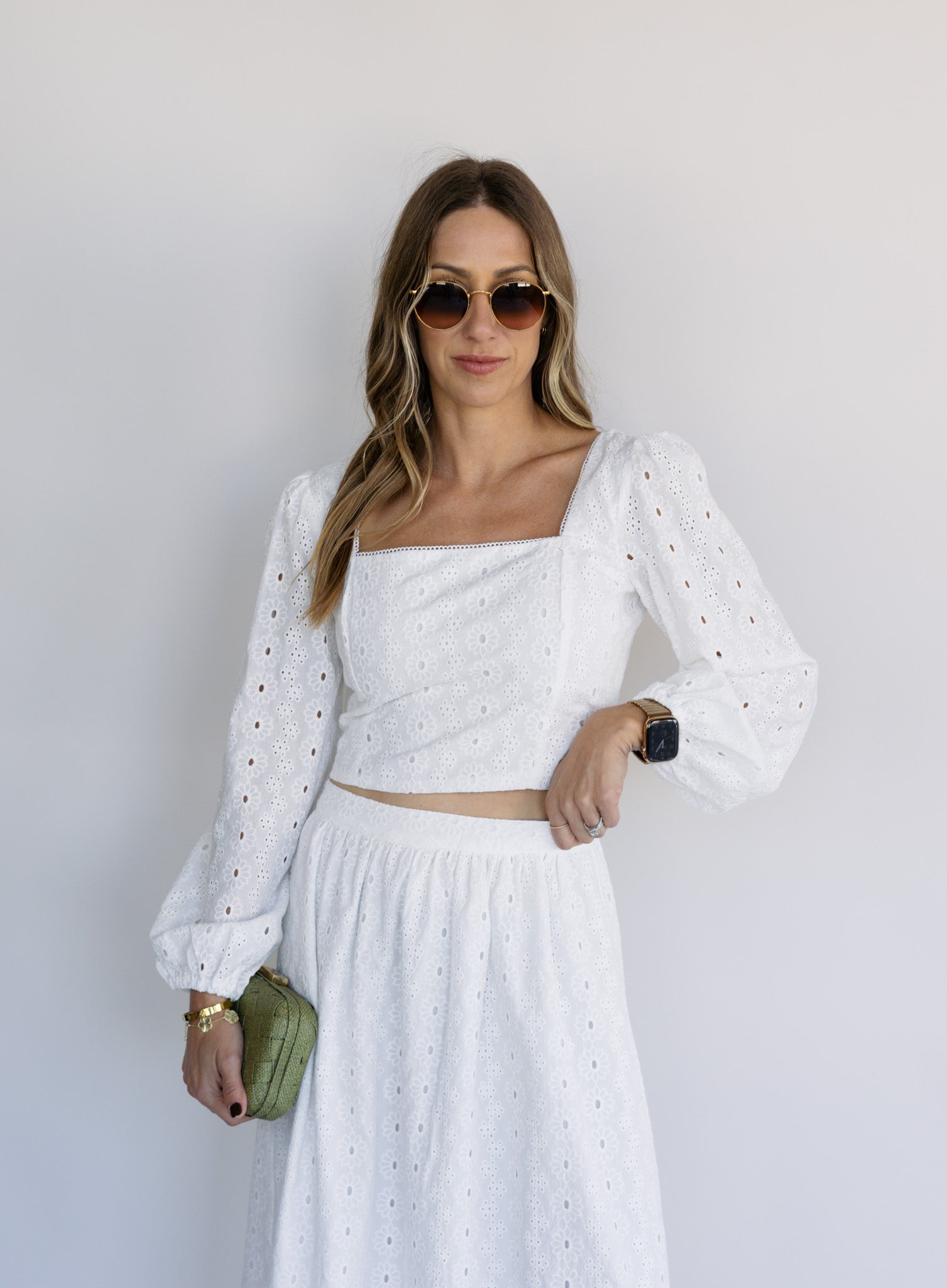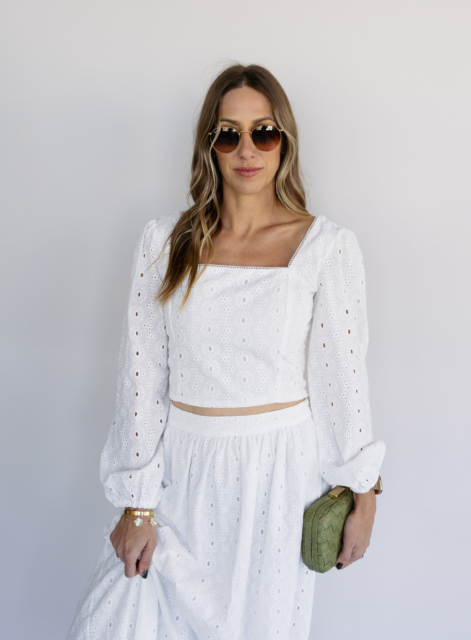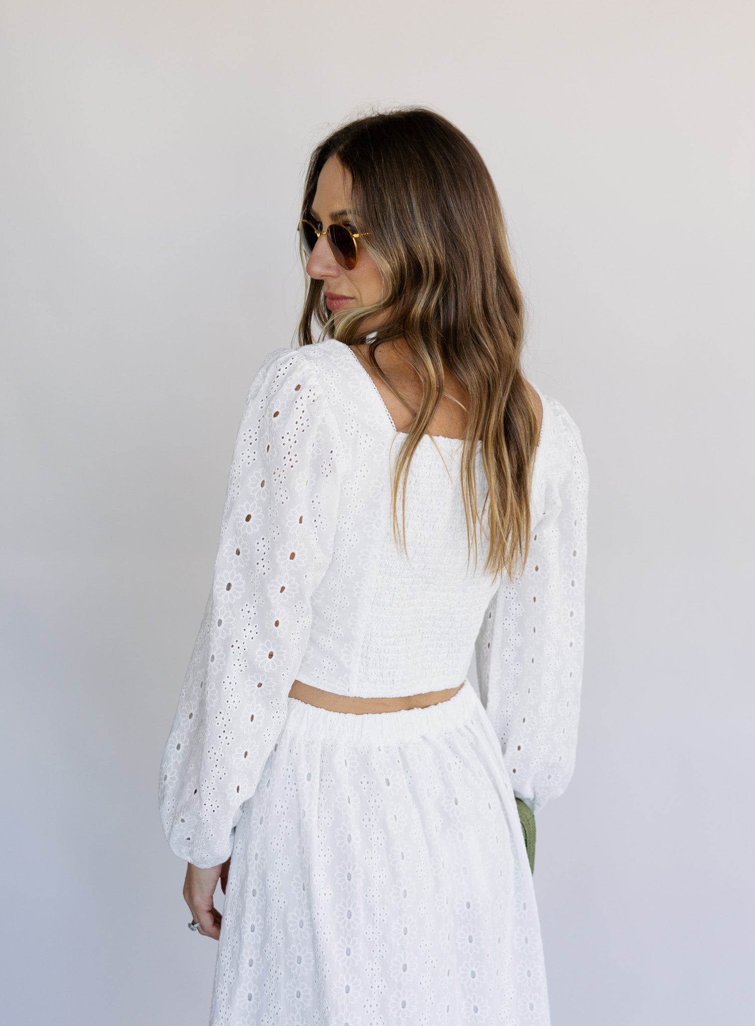 Made from 100% cotton fabric, the Bria Top features a square neckline, billowed sleeves, and a smocked back for a romantic, flattering fit. The cropped length styles well with high-rise skirts or denim, creating a soft, feminine look you’ll reach for all season.