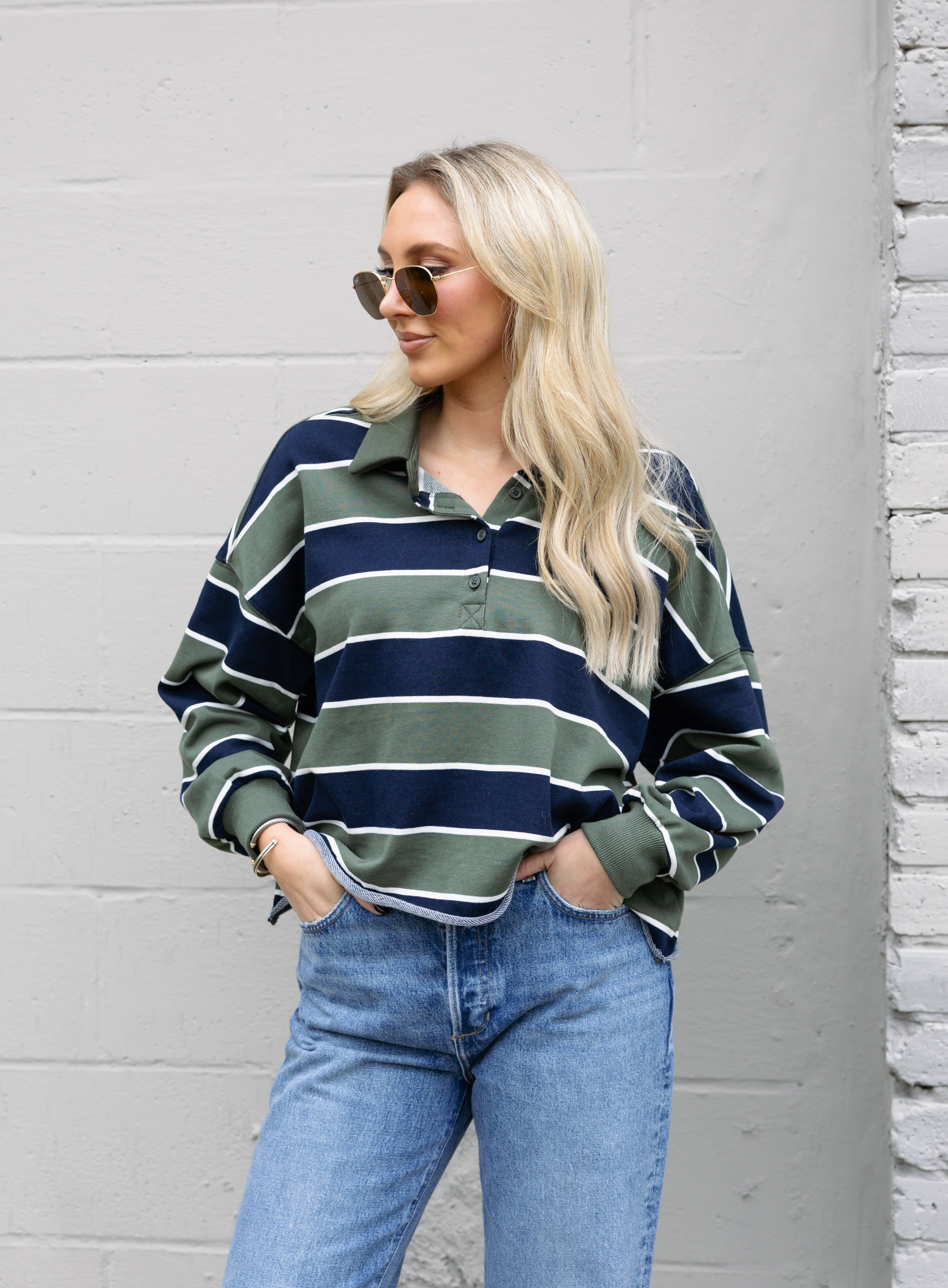 The Heritage Rugby Polo features a relaxed fit with timeless stripe detailing and a crisp collar. Easy to style with denim or layered for an off-duty look you’ll wear on repeat.