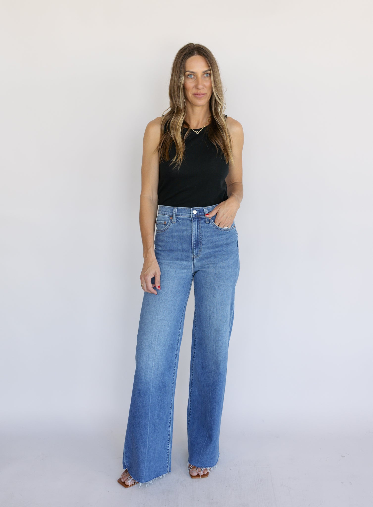 A modern denim staple with an easy feel. The Far Out High Rise Wide Leg Denim features a flattering high-rise waist and a wide leg silhouette with a structured shape that still offers comfort stretch. The medium indigo wash and raw hem give it a relaxed, lived-in finish.
