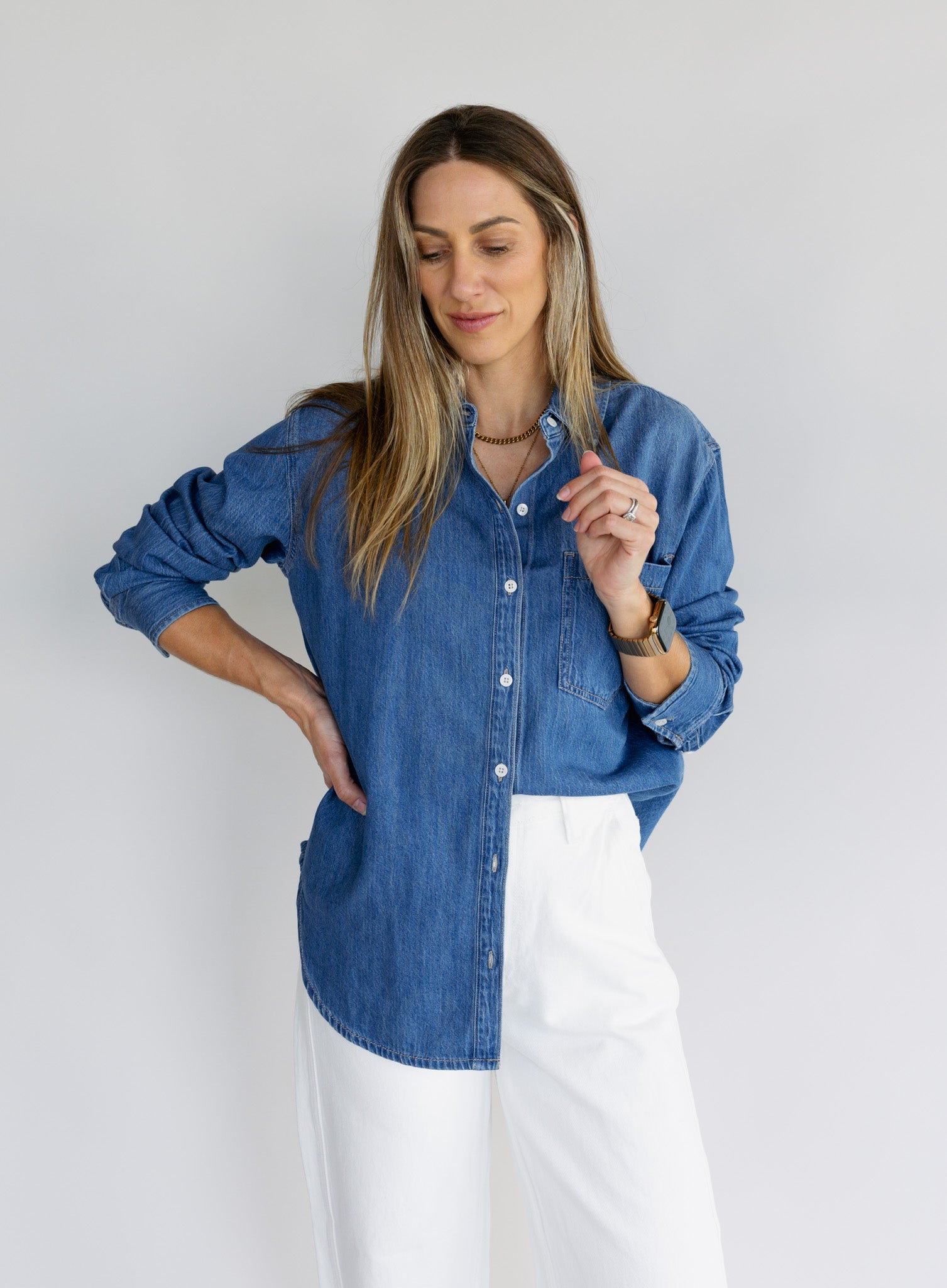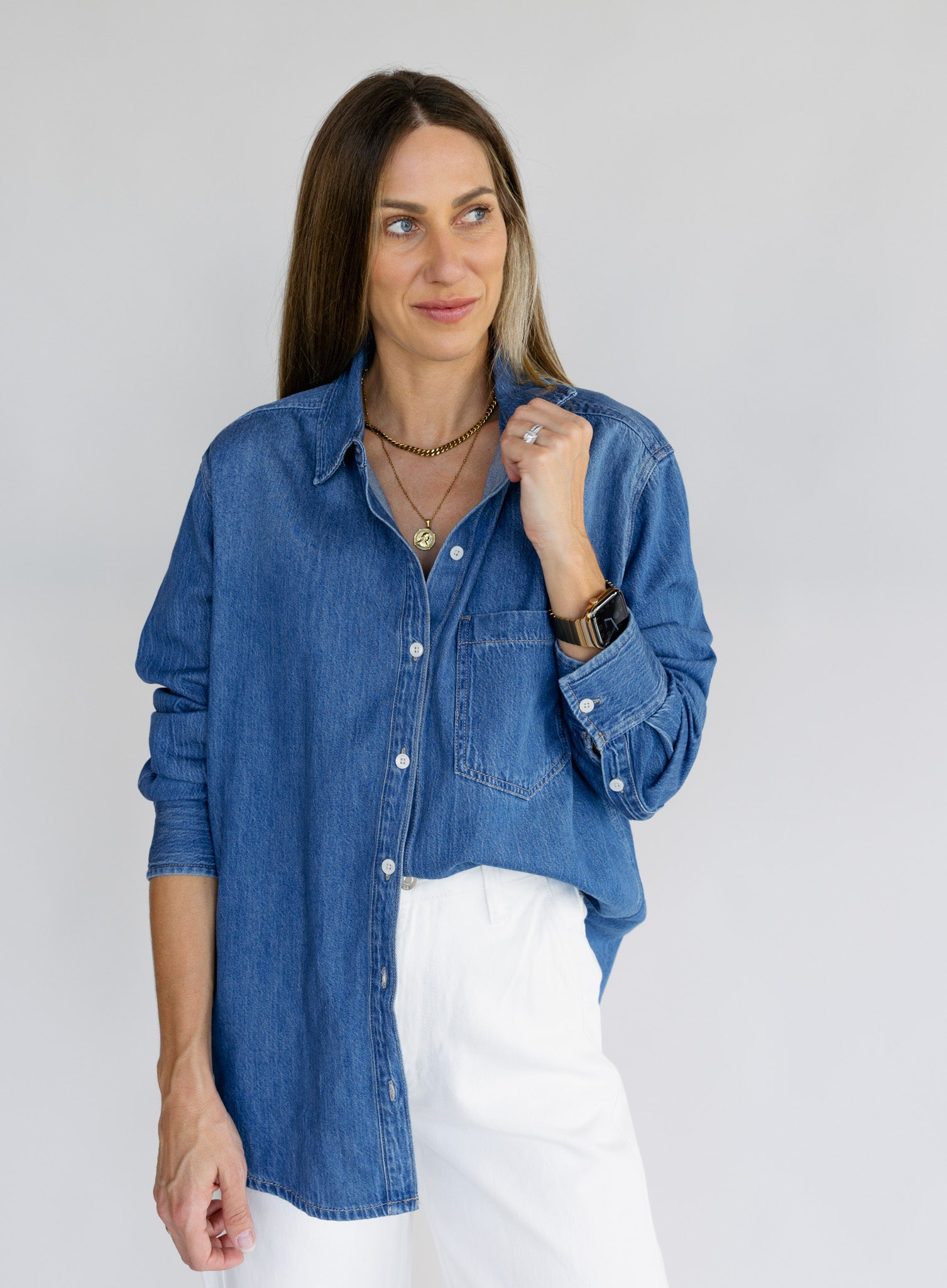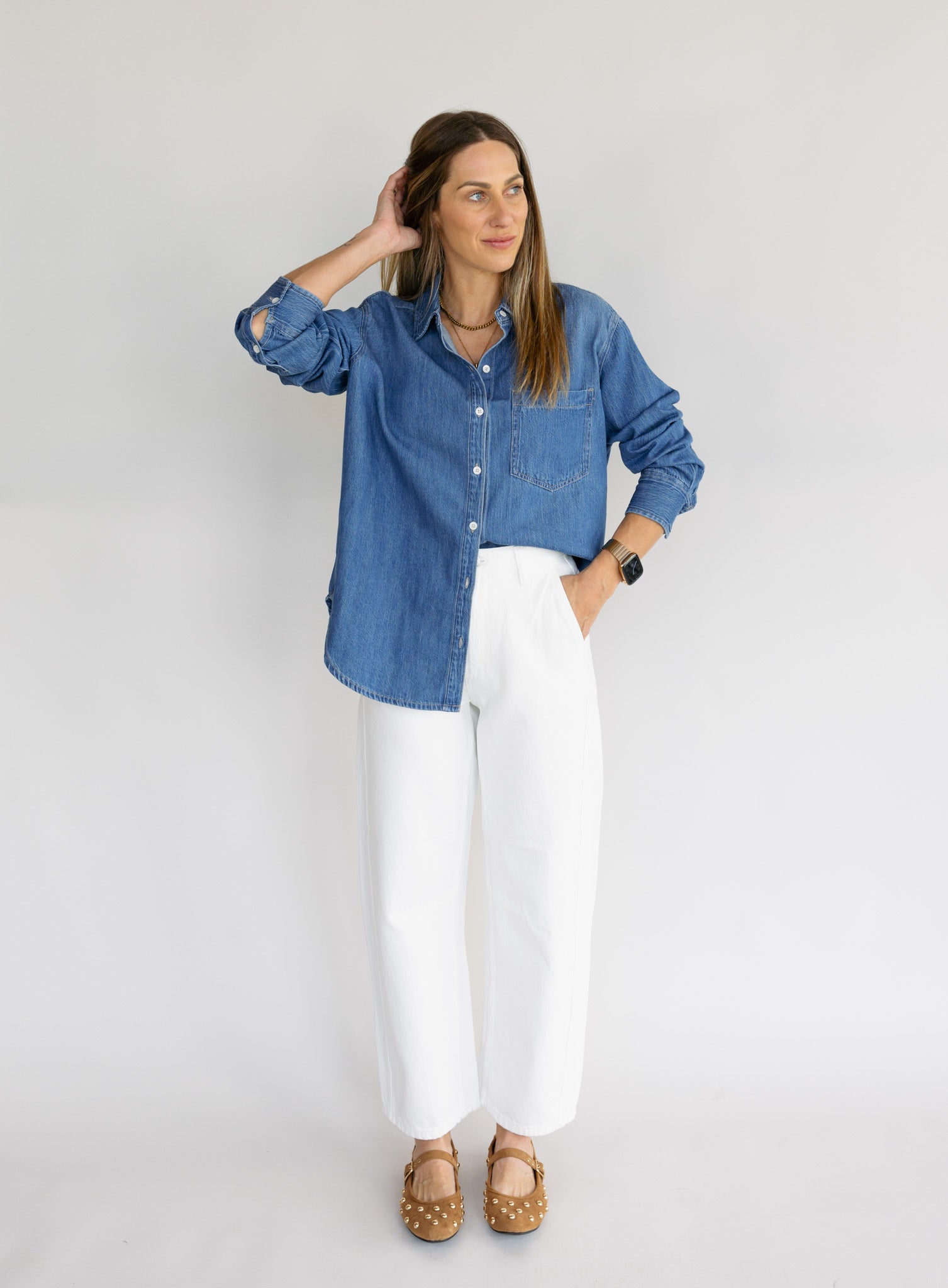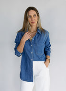 The Pistola Jaime Denim Top is your go-to shirt for effortless style. With a relaxed fit and classic button-up front, it offers an ideal length that flatters every look. Its timeless design includes a chest pocket and neat details, combining polished appeal with casual ease. Made from rigid denim, this shirt is designed to become a wardrobe staple you'll love to wear again and again.