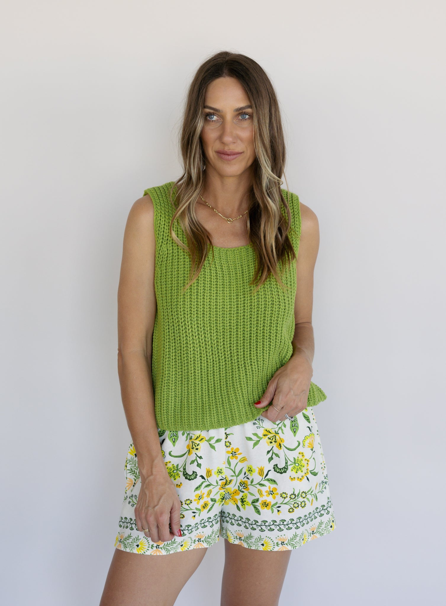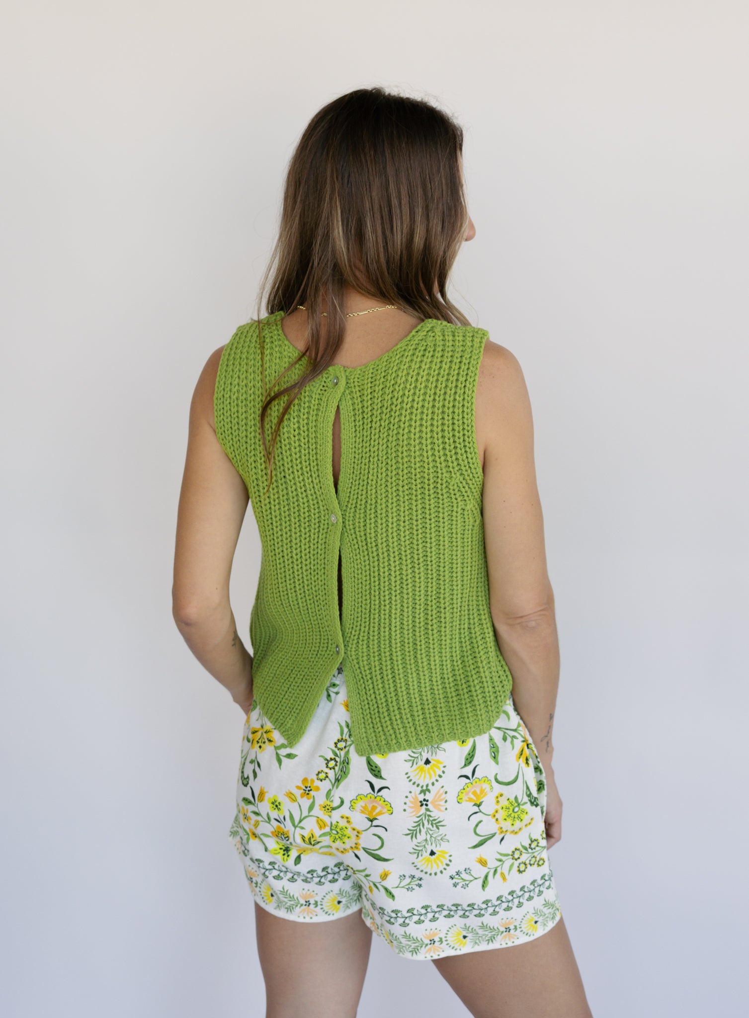 An easy statement in a standout color. The Sundays Sweater Tank features a lightweight knit with a relaxed fit and a sleeveless silhouette, finished with a subtle three-button closure at the back. The punchy green hue captures the season's fresh energy.