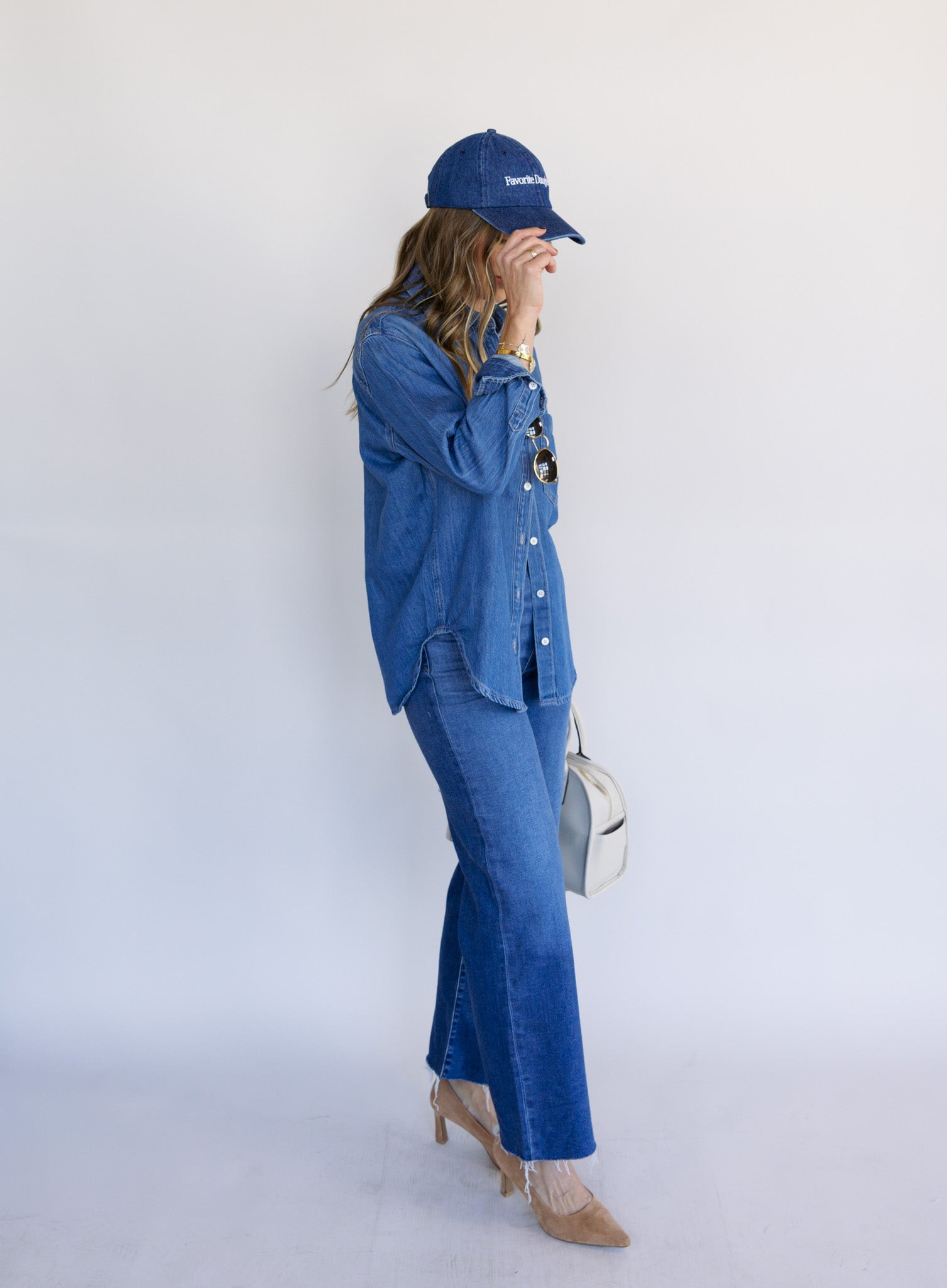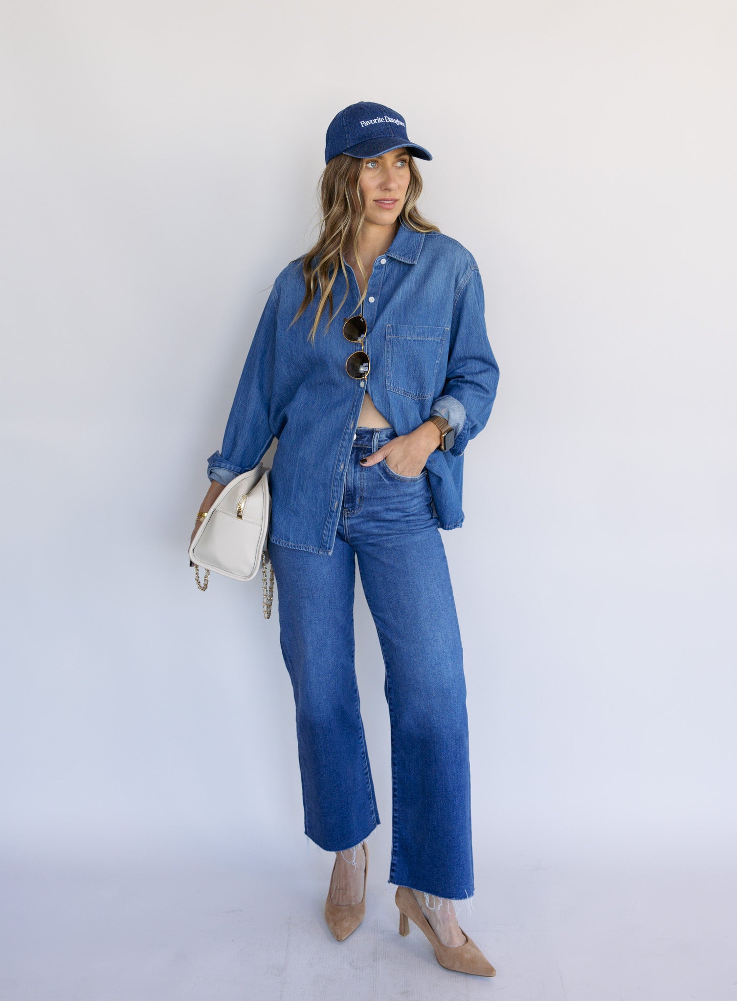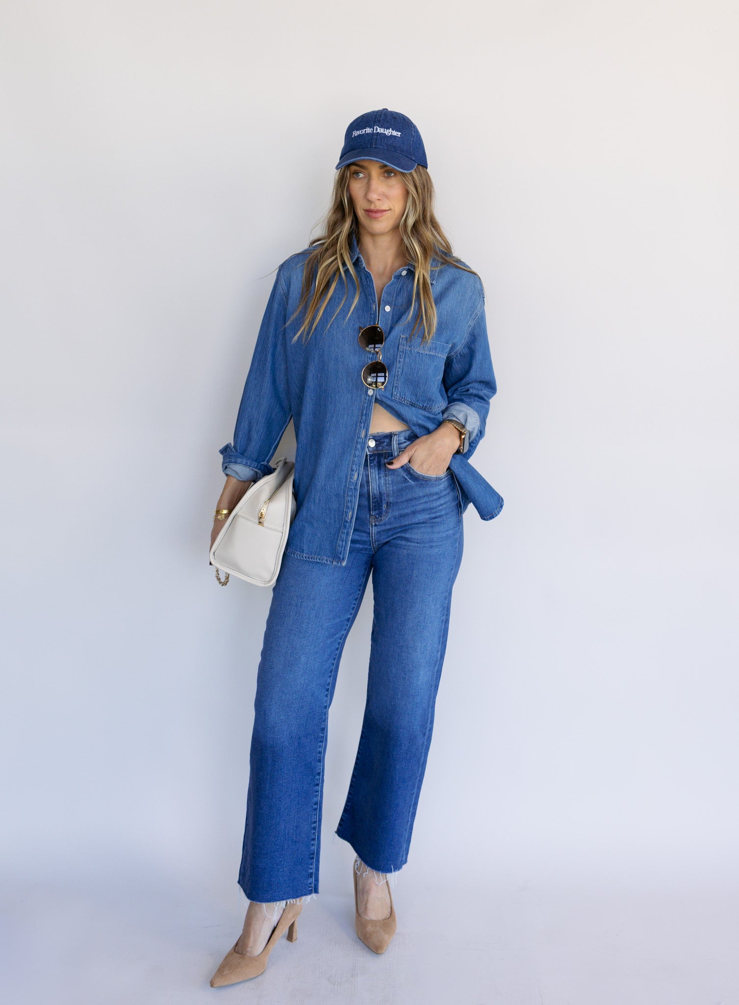 The Pleaser is our tried and true high rise wide ankle, featuring seaming details at the waist against an indigo blue wash with slight fading. This fit is constructed from our Hug denim, which is flexible enough to hug your body, yet heavy enough to cinch you in.