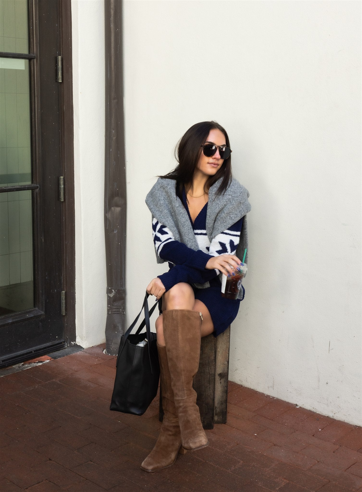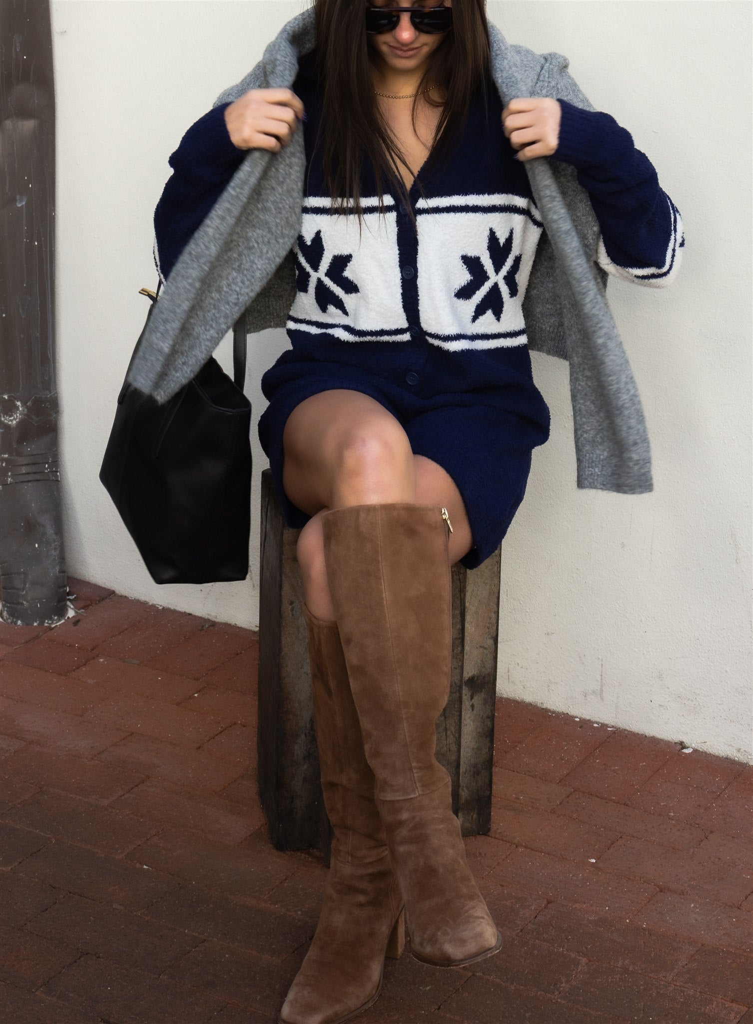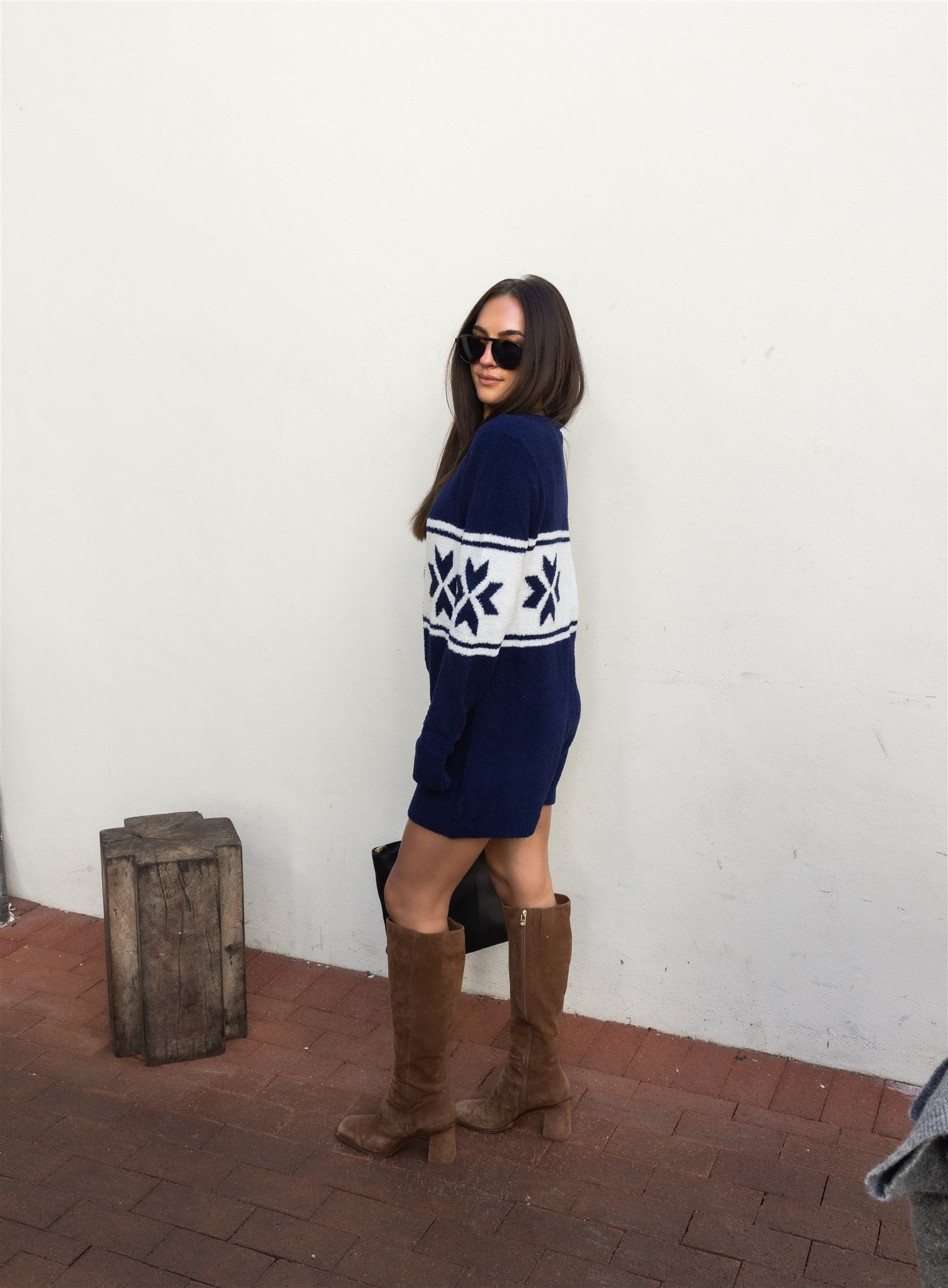 The Nordic Plush Romper pairs a soft winter knit with an easy, one-and-done fit. Just add boots and go.