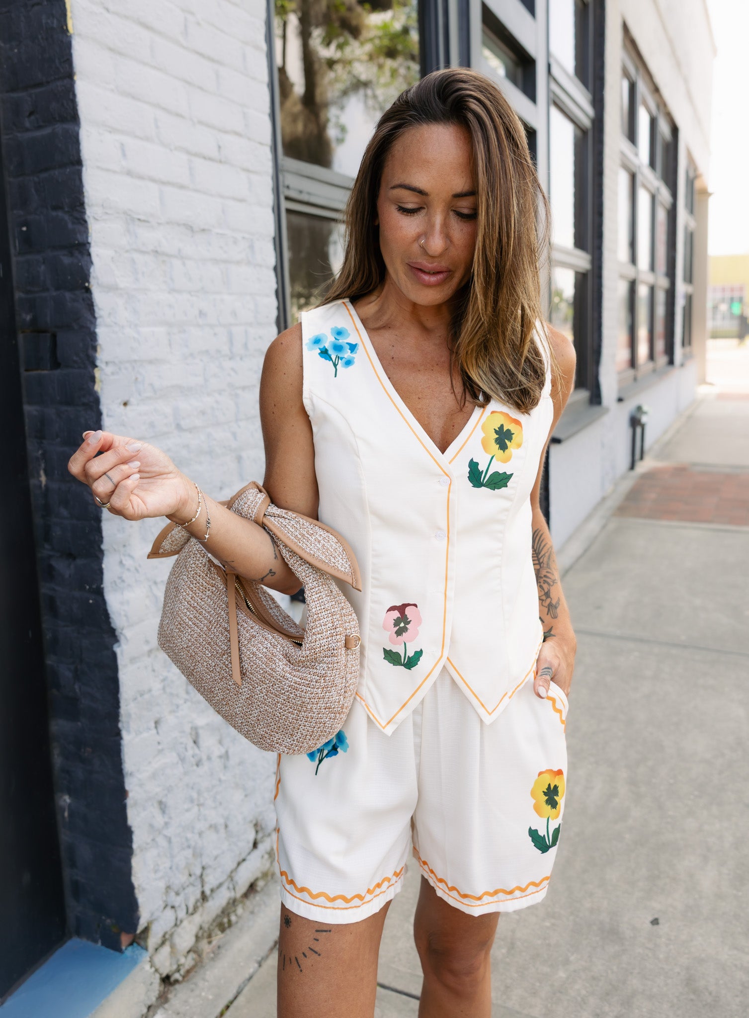 - printed floral detailing