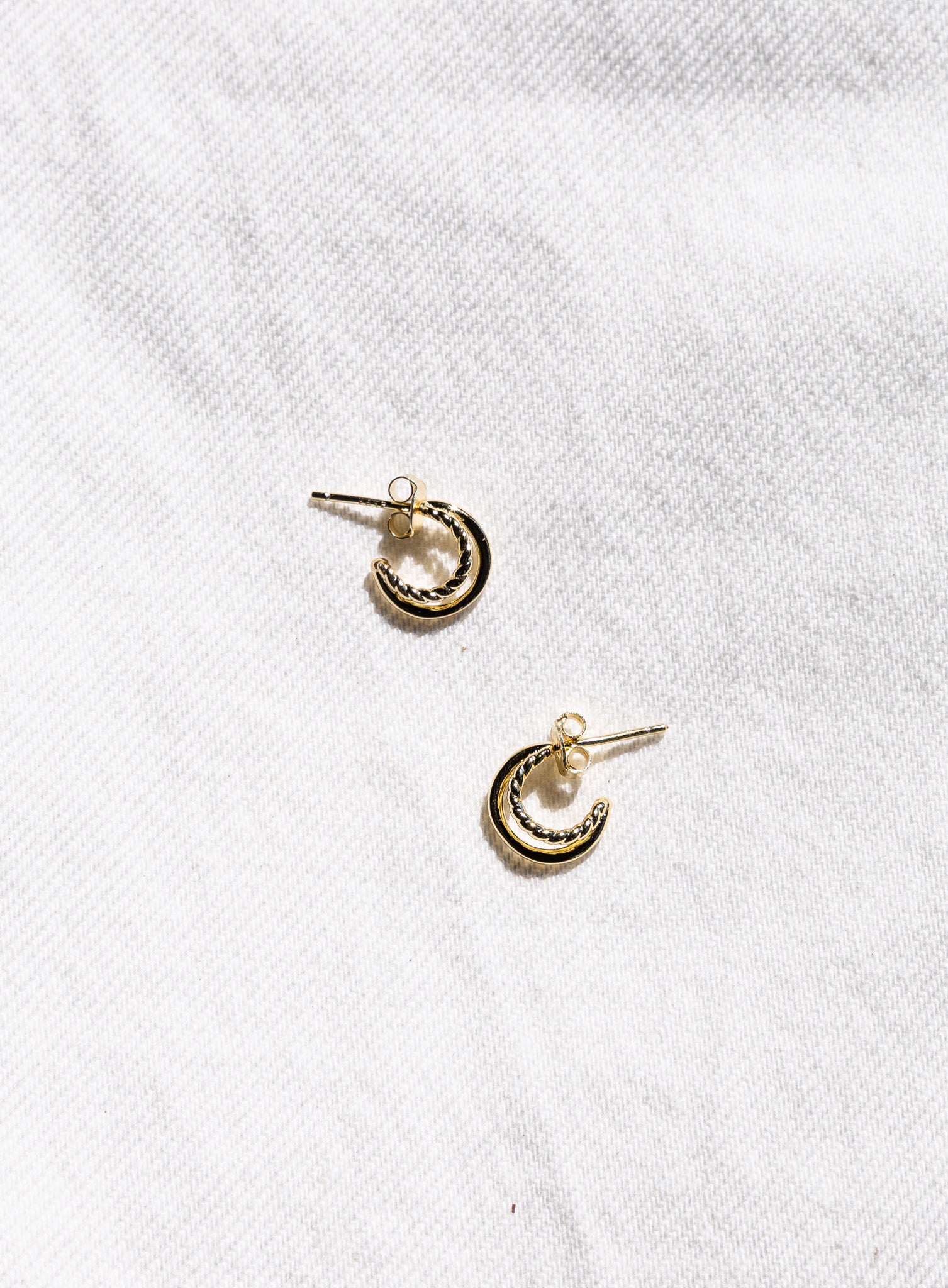 Your everyday hoop with a twist! Our two-in-one double offset hoop earring has a smooth larger hoop nestled next to a mini twisted hoop.