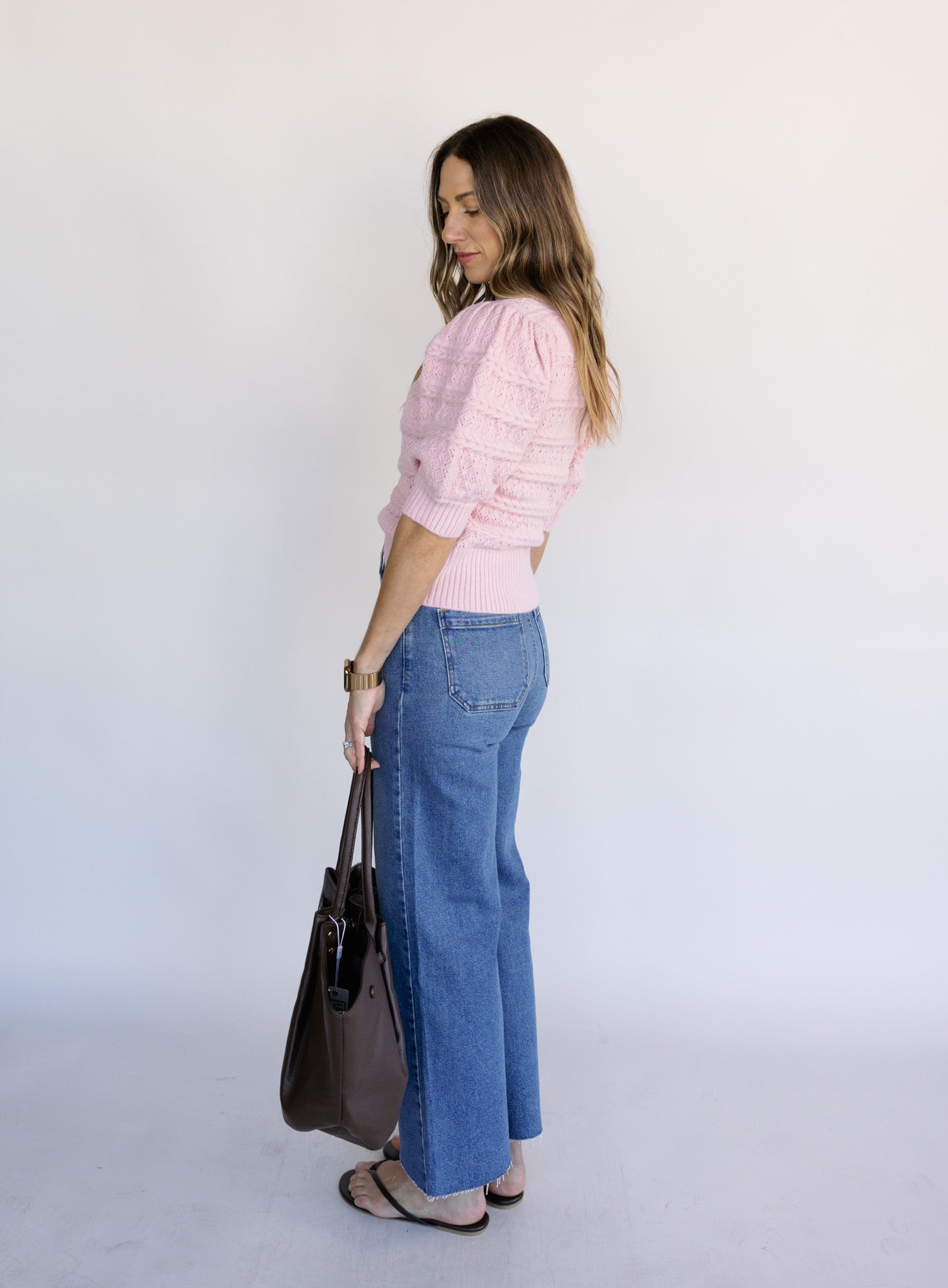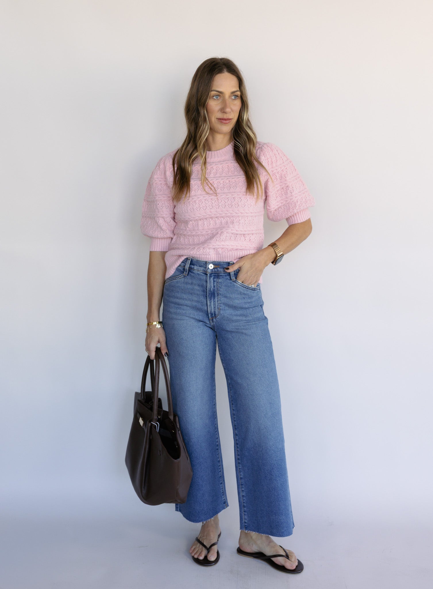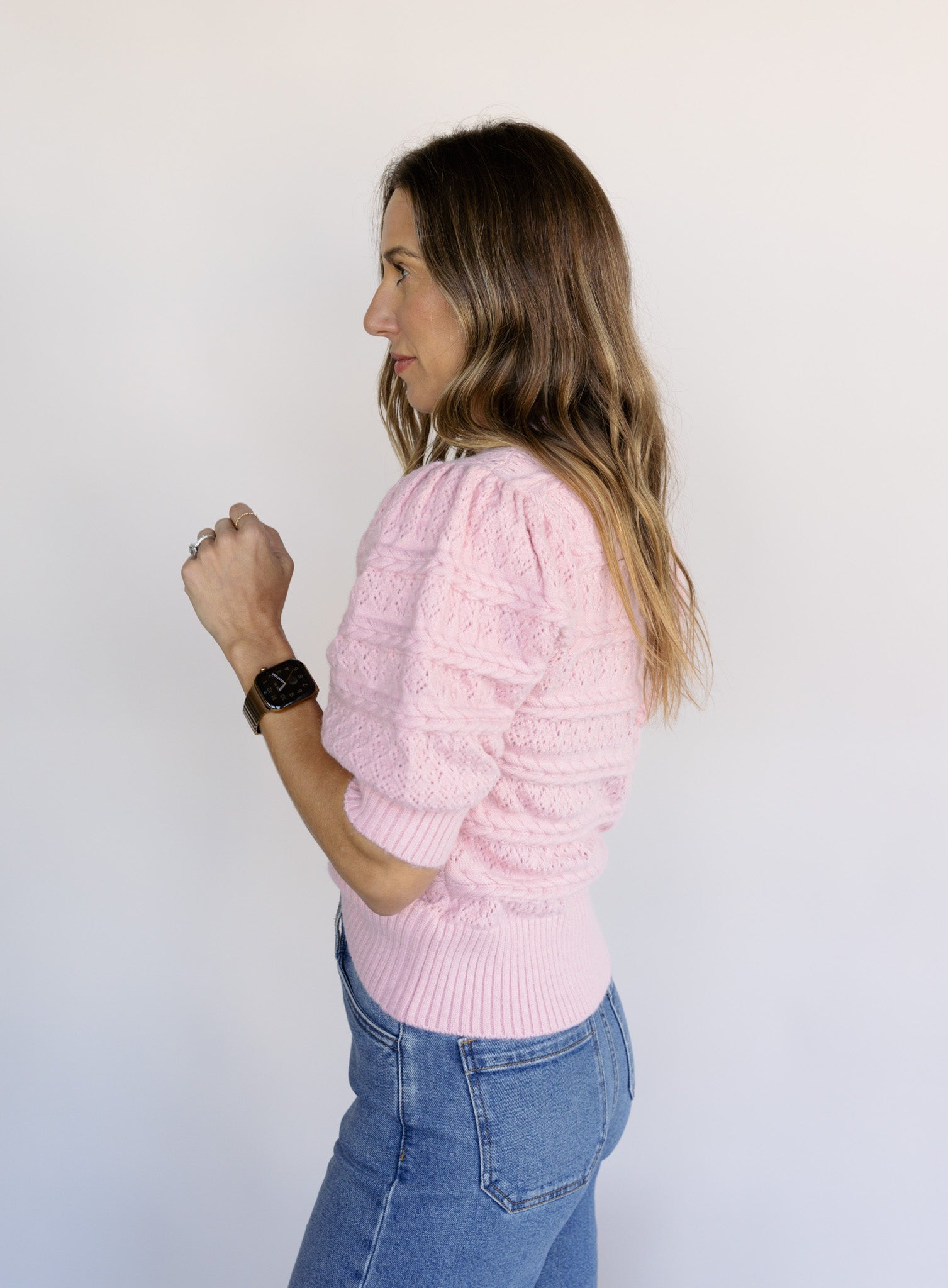 The Rosewood is a soft, feminine knit with delicate cable detailing and an easy short-sleeve silhouette that feels both timeless and fresh. Its blush tone brings a subtle pop of color, making it an effortless choice for everyday wear that still feels thoughtfully styled.